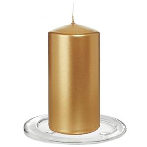 Trend Candles stompkaarsen met glazen onderzetters set van 2x stuks in het goud metallic. Kaars dikte/hoogte: dia 6 x hoogte 12 cm. Branduren: 40 uur. Rechte cilinderkaarsen/stompkaarsen zonder geur met gladde afwerking. De glazen stompkaarsen onderzetters zijn 11 cm breed(incl. rand) en hebben een open stuk van 8 cm voor plaatsing van een kaars. , Dit artikel bestaat uit:, 2x Cilinderkaars/stompkaars - goud - 6 x 12 cm - 40 branduren, 2x Ronde kaarsenhouder/kaars onderzetter - glas - 11 cm - voor stompkaarsen