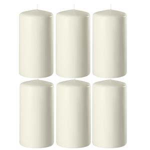 6x Ivoorwitte cilinderkaarsen/stompkaarsen 6 x 8 cm 27 branduren. Rechte cilinderkaarsen/stompkaarsen zonder geur met gladde afwerking in de kleur ivoorwit. U kunt meerdere kaarsen gebruiken als sfeermakers, bijvoorbeeld tezamen gepresenteerd op een kaarsenplateau. Formaat: diameter 6 cm, hoogte 8 cm. Aantal branduren: 27 uur. Materiaal: wax/was, paraffine. Kleur: ivoorwit. Aantal kaarsen: 6. Geurloze sfeerkaarsen cilinder/stomp kaarsen. Woondecoraties kaarsen versiering.