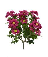 De takken zijn gemaakt van een hoge kwaliteit en duurzame soort kunststof en de bloemen van een speciaal geweven delicaat soort kunstzijde. Hoe stevig de bladeren voelen, hoe zacht de 25 bloemen zijn. Dit Chrysant boeket is ongeveer 35 cm hoog (inclusief steel) en wordt standaard als los boeket geleverd.