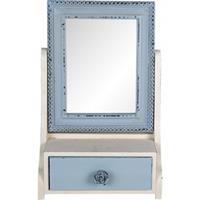 Clayre & Eef Staande Spiegel 25*14*38 cm Blauw MDF, Glas Staande Spiegel Decoratie SpiegelTafelspiegel met lade in landelijke stijl blauw/creme gekleurd van het merk Clayre & Eef.Tafelspiegel met lade in landelijke stijl blauw/creme gekleurd van het merk Clayre & Eef.Staande Spiegel Staande Spiegel Decoratie Spiegel Productinformatie: Merk: Clayre & Eef Materiaal: glas Kleur: Blauw Afmetingen: 25*14*38 cm
