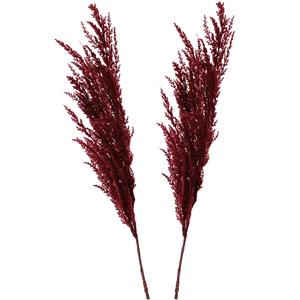 2x topArt Pampasgras pluim losse steel/tak. Kunstplant graspluim steel in de kleur bordeaux rood van ongeveer 100 cm. Gemaakt van kunststof voor binnen gebruik. Niet van echt te onderscheiden. Zet meerdere stelen in een vaas of als losse steel in een boeket met andere bloemen en takken. De compositie wordt mooier per meer stuks. Lengte steel: 58 cm. Lengte pluim: 42 cm.