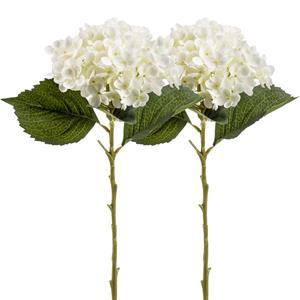 2x kunstbloem Hortensia tak Annabelle 52 cm creme. Deze hortensia kunst tak wordt als losse steelbloem geleverd en kan in combinatie met andere kunstbloemen tot een mooi boeket worden verwerkt, of is mooi als losse tak in een vaas. De kunsttak heeft 1 mooie grote bloem en zijtakjes met blaadjes en voelt zijdezacht aan. Prachtige kwaliteit, en niet van echt te onderscheiden. Formaat: 52 cm. Materiaal: kunststof/zijde. *Voordelen* - Onderhoudsvrij, je hoeft niet te denken aan water geven. - Het hele jaar rond prachtig in bloei. - Niet van echt te onderscheiden, voelt zijdezacht aan.