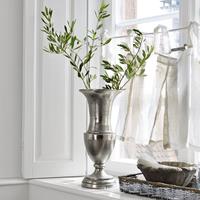 Sierlijk model, verfraait met antiek-zilver. Het sierlijke model en slanke design zijn kenmerkend voor deze mooie vaas. Van aluminium gietwerk en verfraaid met antiekzilver, waardoor hij klassiek en modern tegelijkertijd is. Bloemen komen daarin prachtig tot hun recht, maar de schoonheid van de vaas is ook evident zonder "vulling.