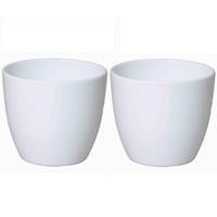 2x stuks bloempot in de kleur glanzend wit gemaakt van keramiek voor een kamerplant - H15 x D17.5 cm.