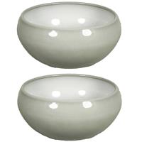 2x stuks bloempot schaal in de kleur misty grijs gemaakt van keramiek voor een kamerplant - H13 x D30 cm.