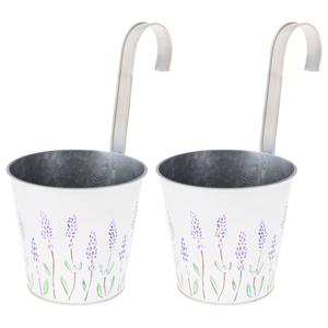 2x stuks bloempotten/plantenbakken in de vorm van een zinken emmertje met ophanghaak. Afmeting: ca. 14 x 13 x 26 cm. Inhoud: ca. 2 liter. Kleur: creme wit met lavendel.