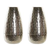 Set van 2x stuks bloemenvaas van aluminium met gouden finish 16 x 32 cm. Prachtige stijlvolle bloemen, boeketten of takken vaas voor binnen. Goudkleurige decoratieve vazen.