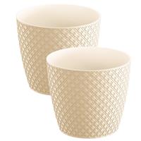 2x stuks orient stijl plantenpot/bloempot van kunststof met diameter 19 cm en hoogte 17 cm in het creme wit. Geschikt voor buiten en binnen. Vorstbestendig ja. Basic plantenpotten voor in de tuin, balkon of binnen.