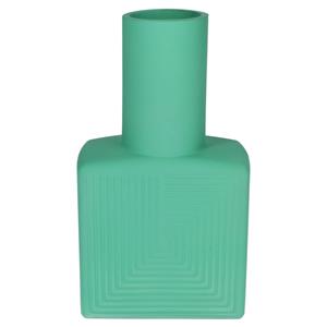 Bloemenvaas/siervaas in de kleur turquoise/blauw van matglas. Model vierkant met cilinder vormige hals. Formaat: D6 x H23 cm. Deze prachtige vaas is uitstekend te gebruiken voor (droog)bloemen, boeketten en takken maar ook geschikt als decoratief object voor binnen. De opening van de vaas is ca. 5 cm breed.