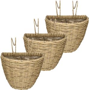 3x stuks balkonmand/plantenmand/plantenbak lichtbruin rotan. Deze handige plantenbak is speciaal geschikt om eenvoudig aan een balkonreling te hangen. De balkonmand heeft een handig gat met stop, waardoor deze voor zowel binnen als buiten te gebruiken is. Formaat: 18 x 29 x 38 cm. Materiaal: polyrattan.