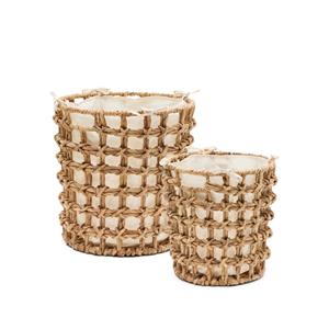 Kave Home Mand Dilam Waterhyacint, Set van 2 stuks De Dena manden, handgemaakt van natuurlijke vezels, laten zien dat je zelfs in alledaagse stukken stijl kunt hebben. Berg kussens en dekens naast de bank op of gebruik ze in de wasruimte. * Set met 2 manden gemaakt van handgevlochten waterhyacint. * Afneembare en wasbare stoffen hoes. * Werkstuk gemaakt met natuurlijke materialen, dus elk exemplaar is uniek, met zijn eigen tinten en texturen. Eigenschappen: * Merk: Kave Home * Materiaal: Handgevlochten waterhyacint * Montage: Volledig afgemonteerd geleverd * Breedte: 30/38 cm * Diepte: 30/38 cm * Hoogte: 30/38 cm * Onderhouds-instructie: Koud wassen (onder 30ºC). Niet bleken. Kan gestreken worden op hoge temperatuur (200 ºC). Niet in de droger. Alle oplosmiddelen behalve tetrachloorethyleen. * Algemene instructie: Niet in de buurt van directe warmtebronnen plaatsen. Uit de buurt van direct zonlicht houden. Gebruik geen schurende producten zoals aceton, bleekmiddel, oplosmiddel, enz. Scherpe elementen kunnen krassen maken op het productoppervlak.
