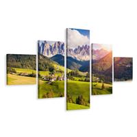 Schilderij - Zonnige dag in de bergen, 5luik, premium print