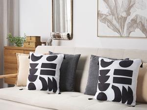 Set van Decoratieve Kussens met Kwastjes. Kussens aan je bank of fauteuil toevoegen kan de inrichting van je huis direct veranderen. Deze set, met aan de voorkant een uniek geometrisch ontwerp, zullen zeker de aandacht trekken. Daarnaast hebben ze ook kwastjes aan elke hoek van de hoes. Ze zijn gemaakt van polyester, wat er voor zorgt dat ze onderhoudsvriendelijk zijn en aangenaam om aan te raken zijn. Details: Producttype: Sierkussen Stijl: Modern Kleur: wit Soort materiaal: Stof Hoofdmateriaal: polyester Materiaal vulling: polyester Material Composition: 100% polyester Vorm: Vierkant Handgemaakt: Nee Patroon: Geometrisch patroon Afmetingen: Diepte: 45 cm Breedte: 45 cm Hoogte: 7 cm Gewicht vulling: 400 kg Gewicht: 500 kg Aanbod omvat: 2 x sierkussen Belangrijkste eigenschappen: Modern design, Perfect voor zowel slaapkamer als woonkamer, Decoratief en functioneel, Hoogwaardig materiaal, Bijzonder onderhoudsvriendelijk, Verwijderbare kussenhoezen Montageinformatie: Geen montage benodig