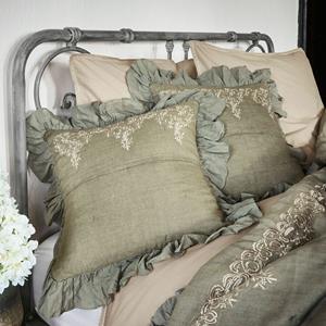 Deze chique set kussenhoezen creëert in uw ruimten een woongevoel, dat uitnodigt tot wegdromen. Daarvoor zorgen vooral de betoverend mooie details zoals de opgestikte bloemenranken op de voorkant en de kleurig afgezette ruchezoom. Daarbij past dan ook de decoratieve sluiting van lintjes aan de achterkant ongelooflijk goed. Het natuurlijke weefsel, dat heet, linnen aan de voorkant en katoen aan de achterkant, accentueert de chique look en zorgt voor een aangenaam zachte textuur. In op vintage geïnspireerde interieurs komen de kussenhoezen bijzonder goed tot hun recht en deze zetten ook op de bank, in uw lievelingsfauteuil of op bed behaaglijke sieraccenten. En wanneer u nog niet genoeg bent bekomen van alle romantische woonaccessoires, raden we u als bijpassende aanvulling onze quilt met artikelnummer 21514 aan.